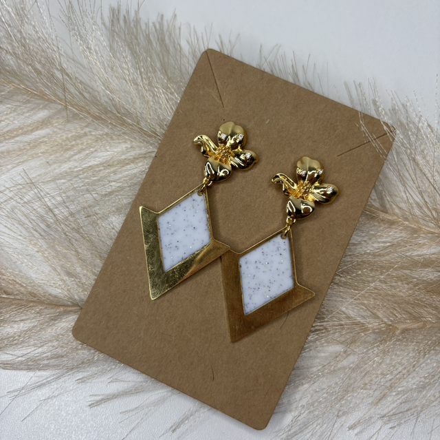 Boucle d’oreille blanche pailletée
