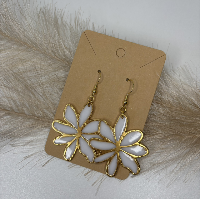 Boucle d’oreille grande fleur blanche 4cm
