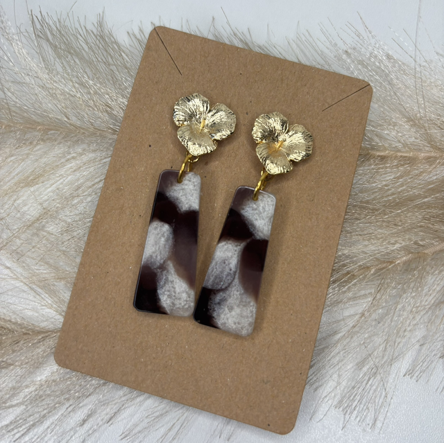 Boucle d’oreilles brunes et blanches