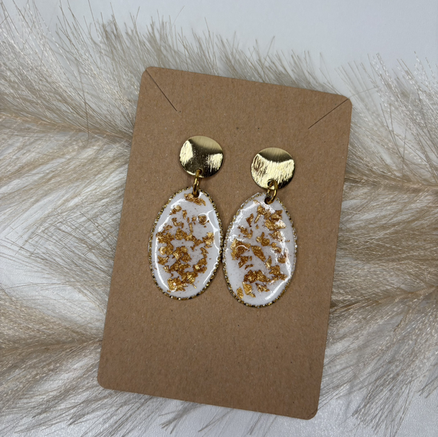 Boucles d’oreilles blanche et feuille d’or