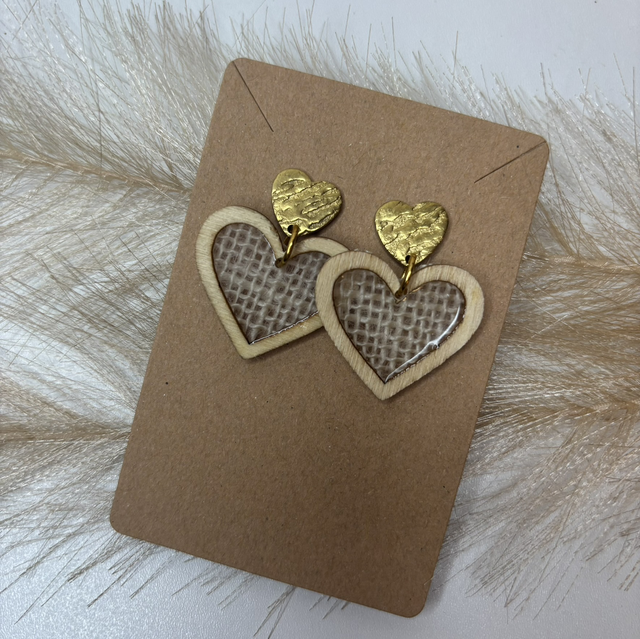 Boucles d’oreilles cœur en bois