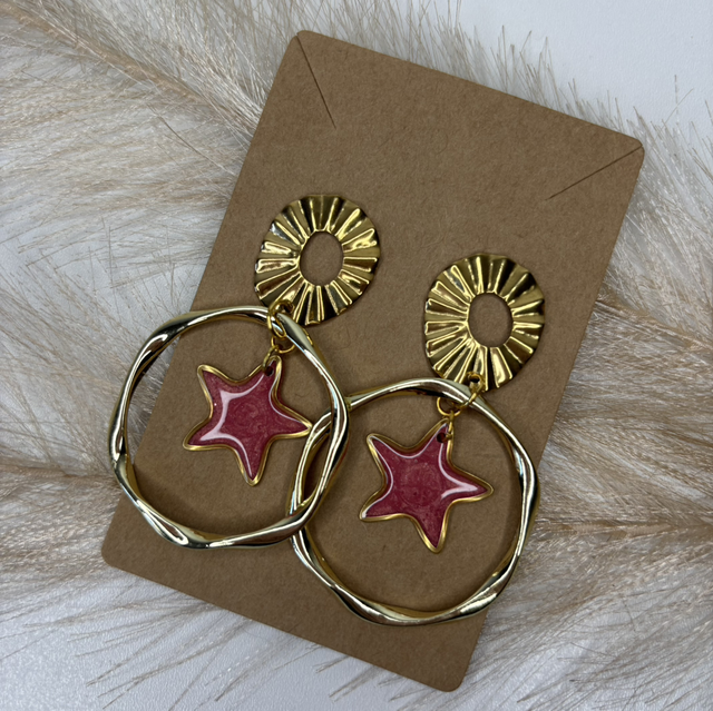Boucles d’oreilles fleurs paillettes rose et dorée