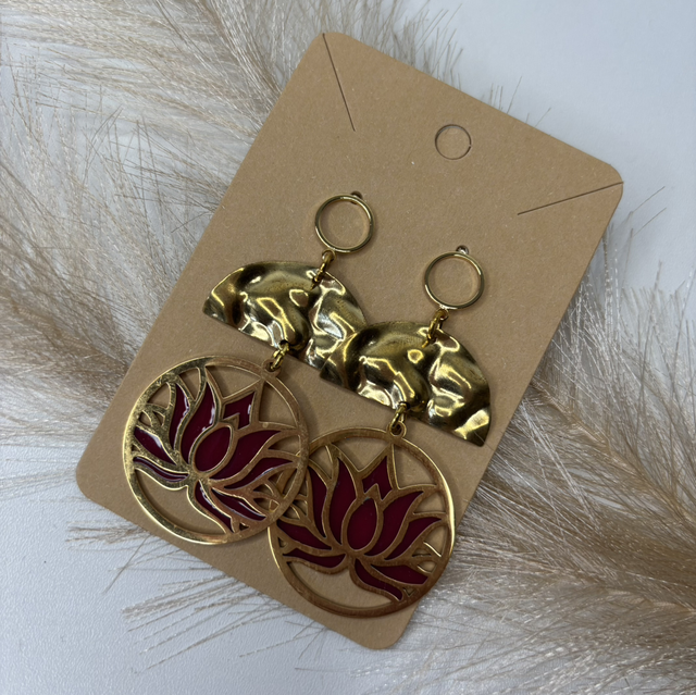 Boucles d’oreilles fleur de lotus rouge