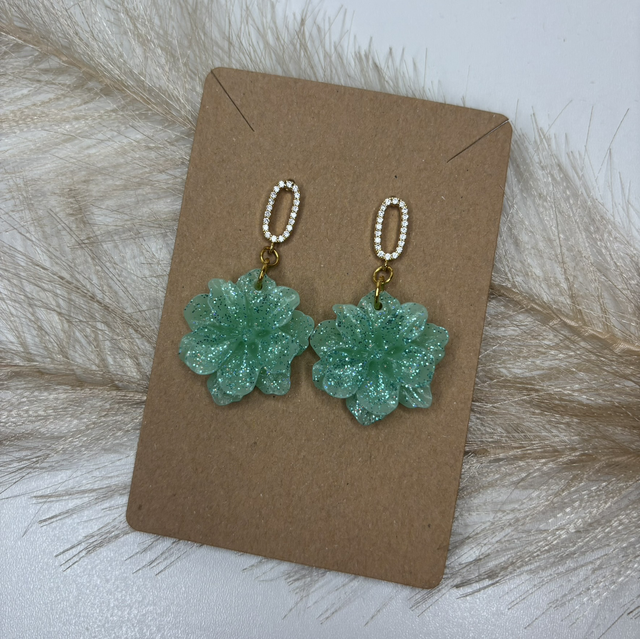 Boucles d’oreilles fleur verte pailletées