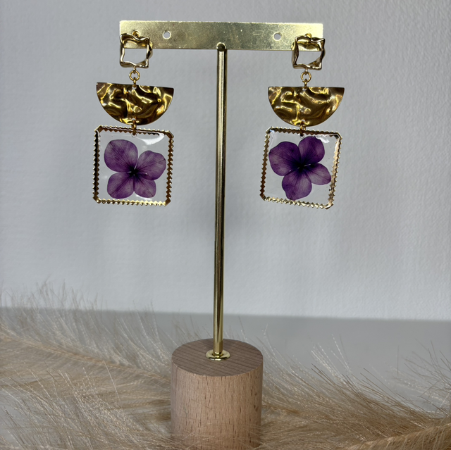 Boucles d’oreilles fleurs violet