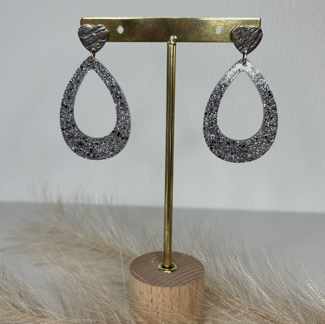 Boucles d’oreilles pailletées noir et argenté