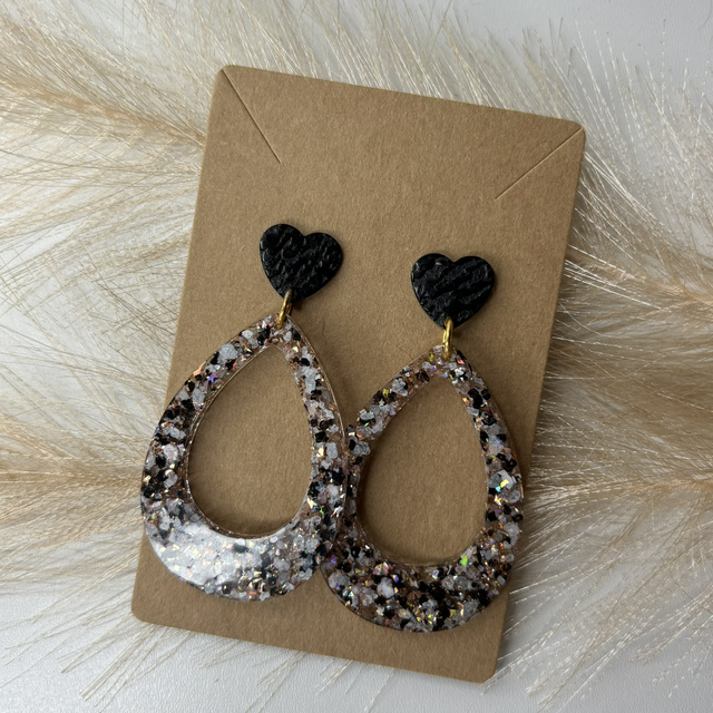 Boucles d’oreilles paillettes noir et blanche