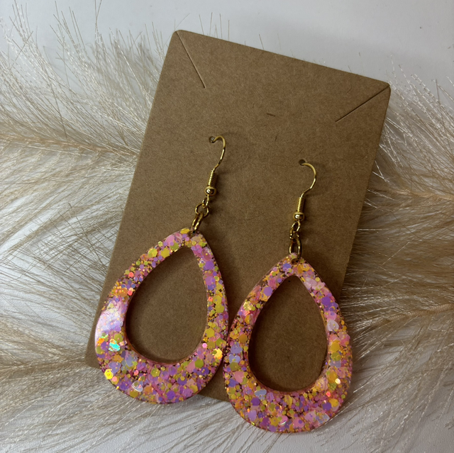 Boucles d’oreilles fleurs paillettes rouges/rose
