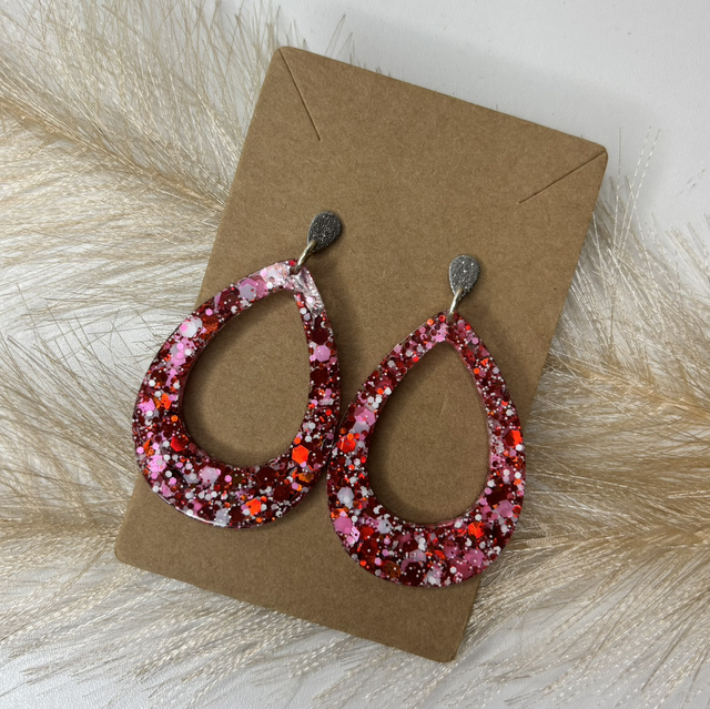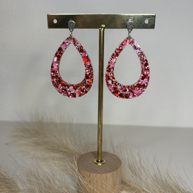 Boucles d’oreilles paillettes rouge et rose