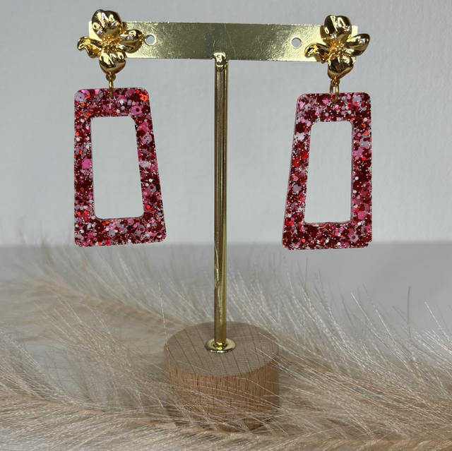 Boucles d’oreilles fleurs paillettes rose et dorée