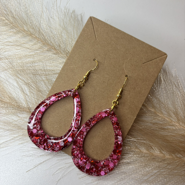 Boucles d’oreilles paillettes rouge et rose