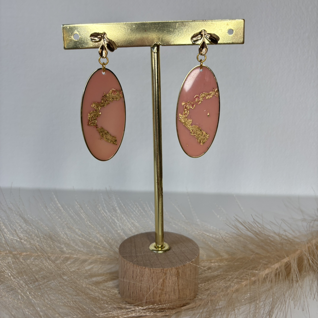 Boucles d’oreilles, rose et feuilles d’or