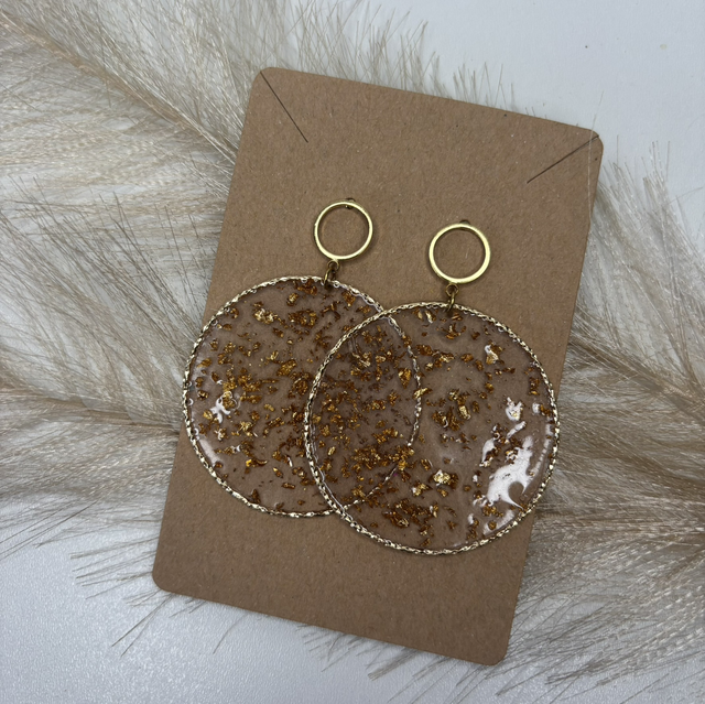 Boucles d’oreilles, transparentes et feuilles d’or