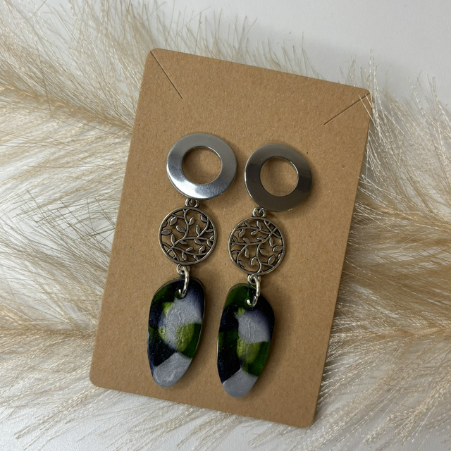 Boucles d’oreilles vert gris et noir