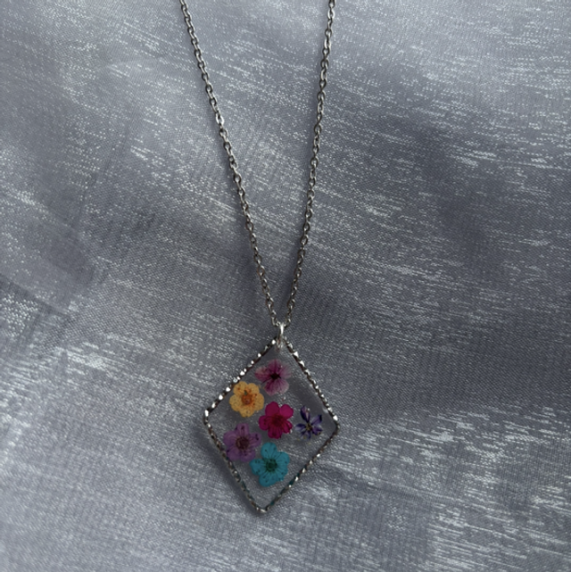 Collier argent fleurs multicolore