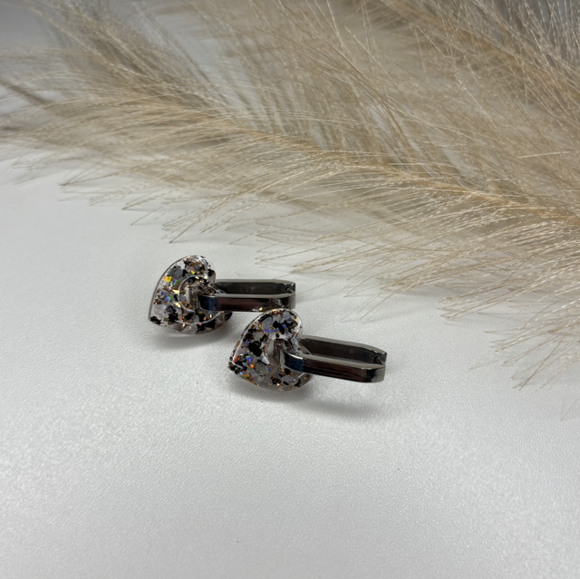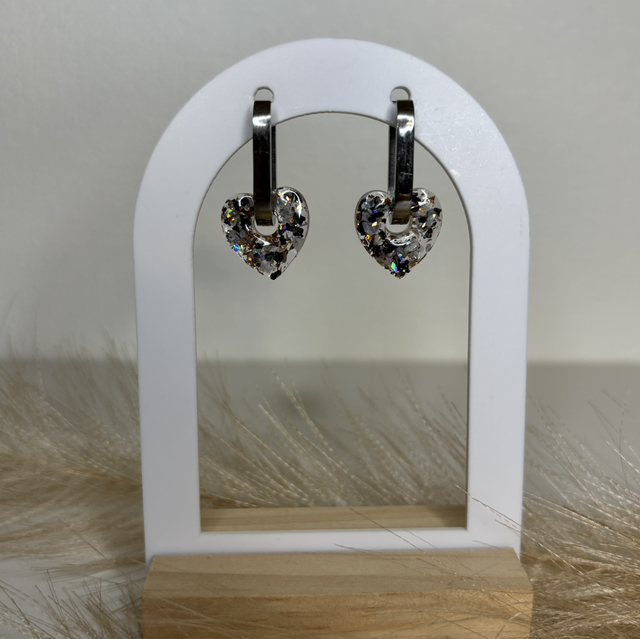 Pampilles créole allongé cœur paillettes noir et blanches
