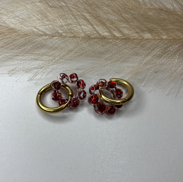 Pampilles fleur paillettes rouge